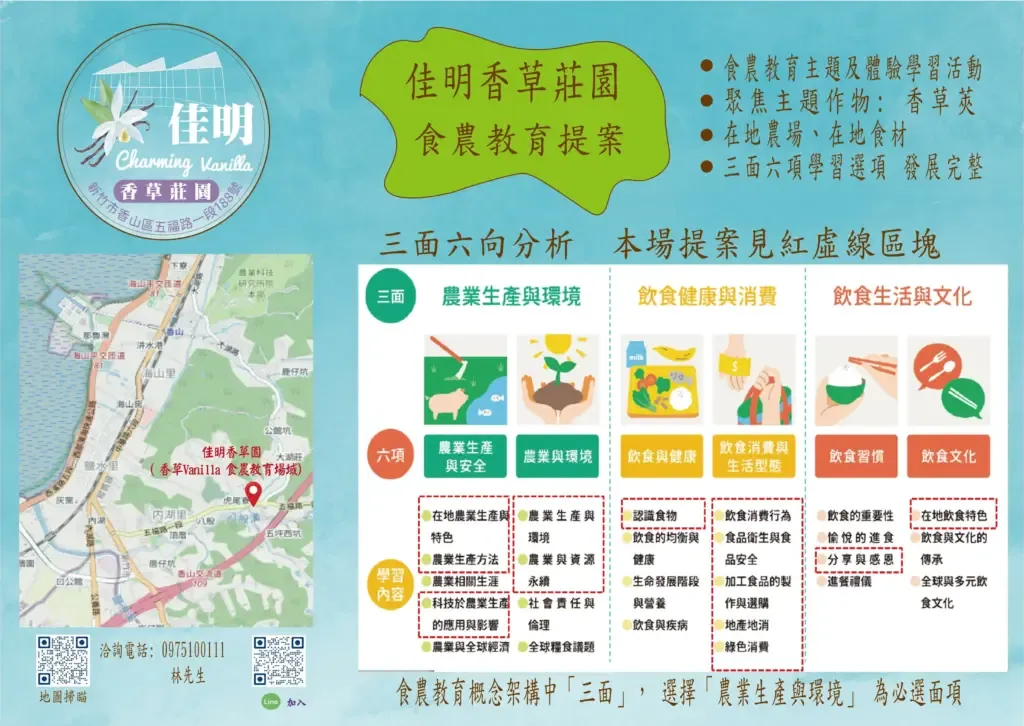 到校即可進行香草莢認識、香草醬 DIY、永續飲食討論;若能安排農場,孩子能實際看到香草藤蔓與授粉方式。